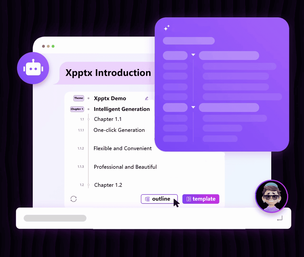 Enter a title or document, and automatically generate PPT with one click to start a new way of making PPT. Xpptx will help you easily create beautiful and professional PPTs, saving you a lot of time in typesetting and beautification, and exploring the unlimited possibilities of AI intelligent PPT making.